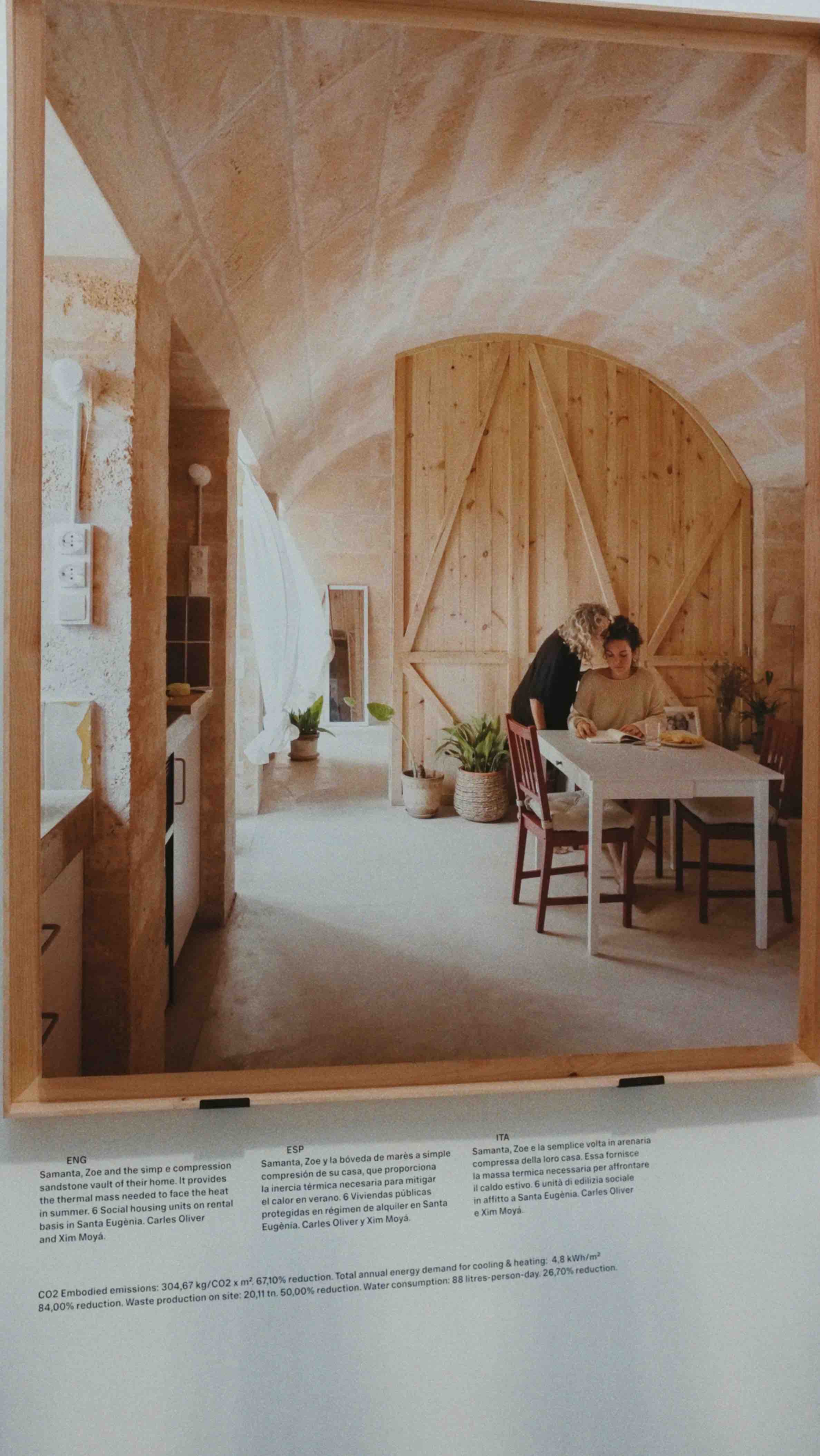 The curators of the pavilion invited several teams of leading architects to present practical studies on sustainability using local materials. In this review, a social housing solution developed by one of the teams — architects Carles Oliver and Xim Moyá (Barcelona) — is selectively presented.