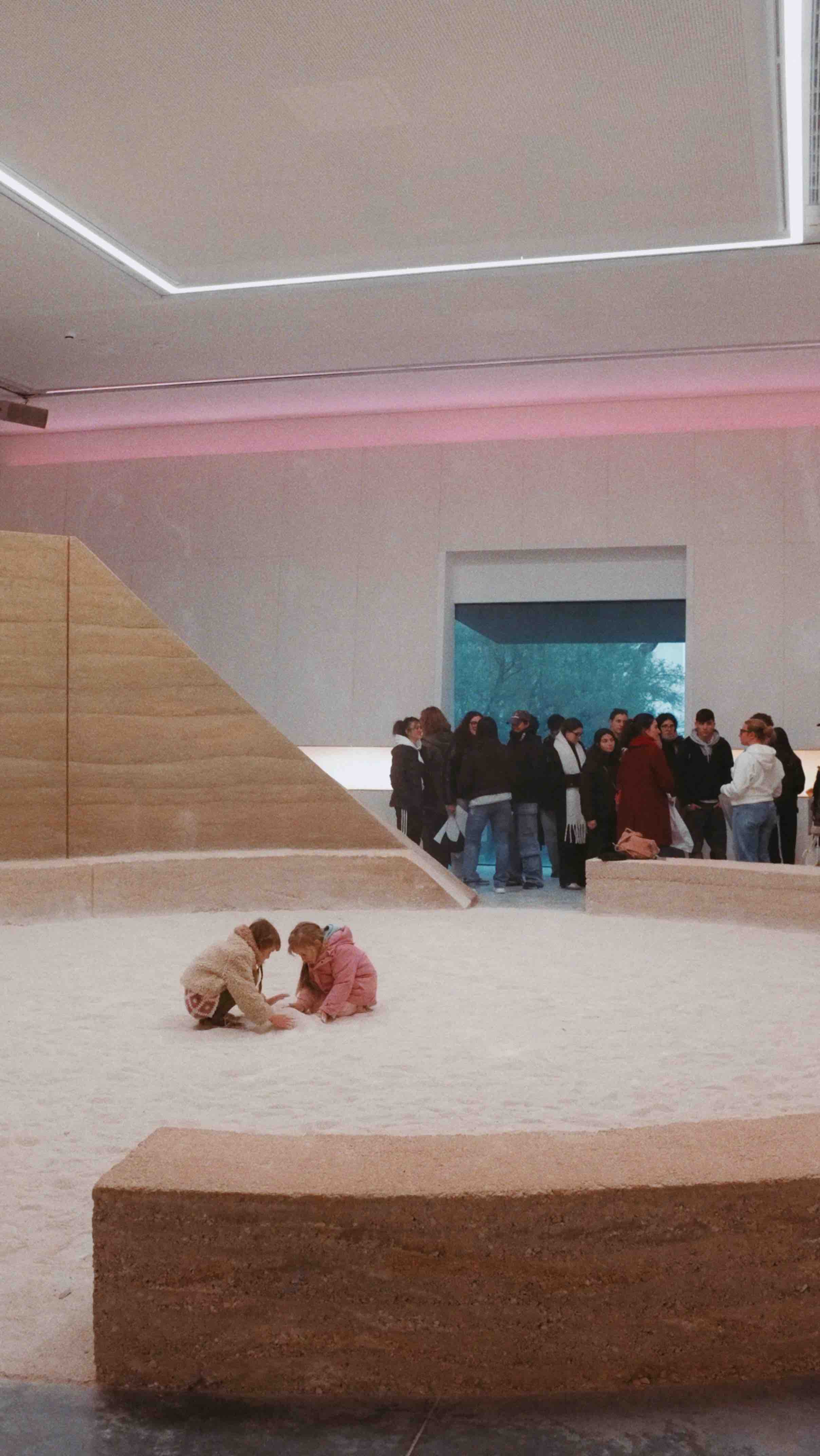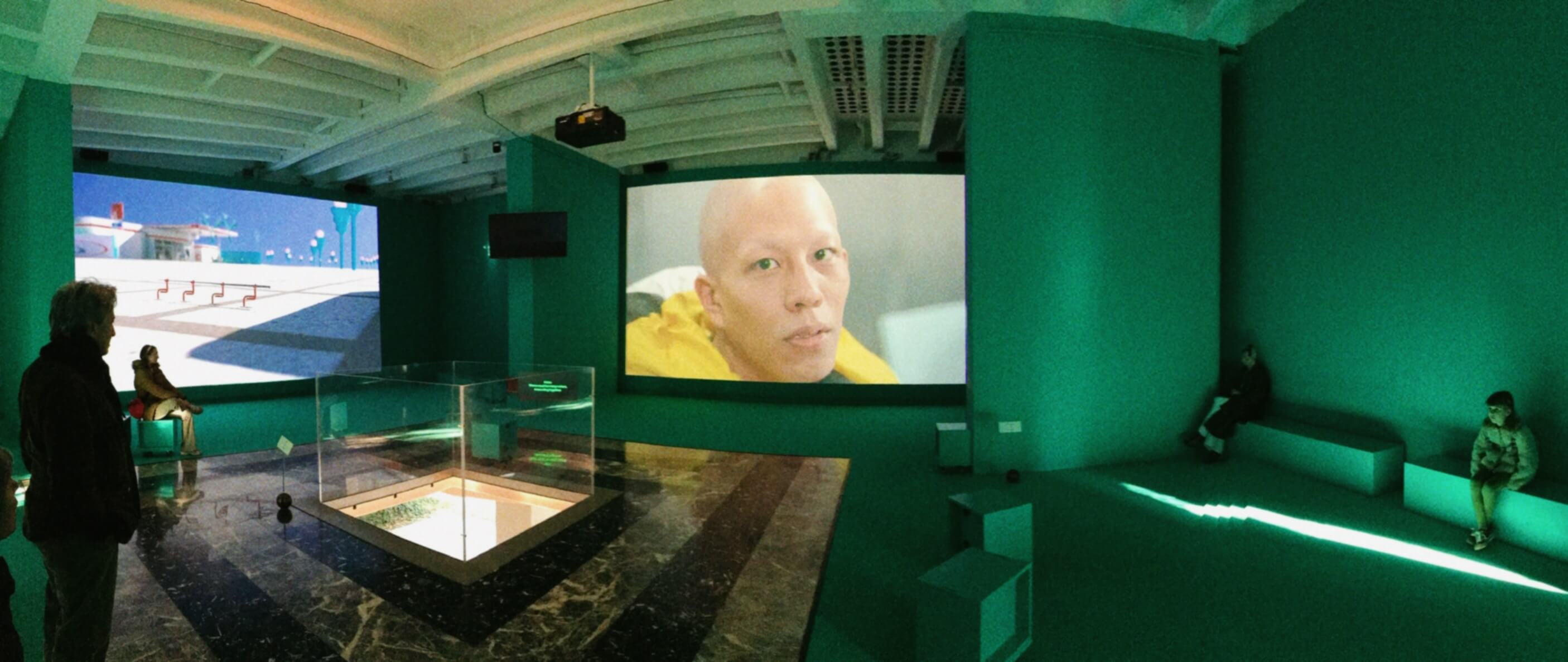 AI tries to approach a world where, unlike humans, it lacks a body. The hole in the first floor of the pavilion (built in 1956 and causing regular problems in exhibitions) this time plays the role of connecting two worlds, while also representing limited perception: it is impossible to know everything. Through this hole, natural light enters the dark capsule of the first floor. Meanwhile, on the ground floor, a plaster installation with natural flaws houses a plant that can be watered. In the rationality of this physical object, we recognize our existence as human beings.