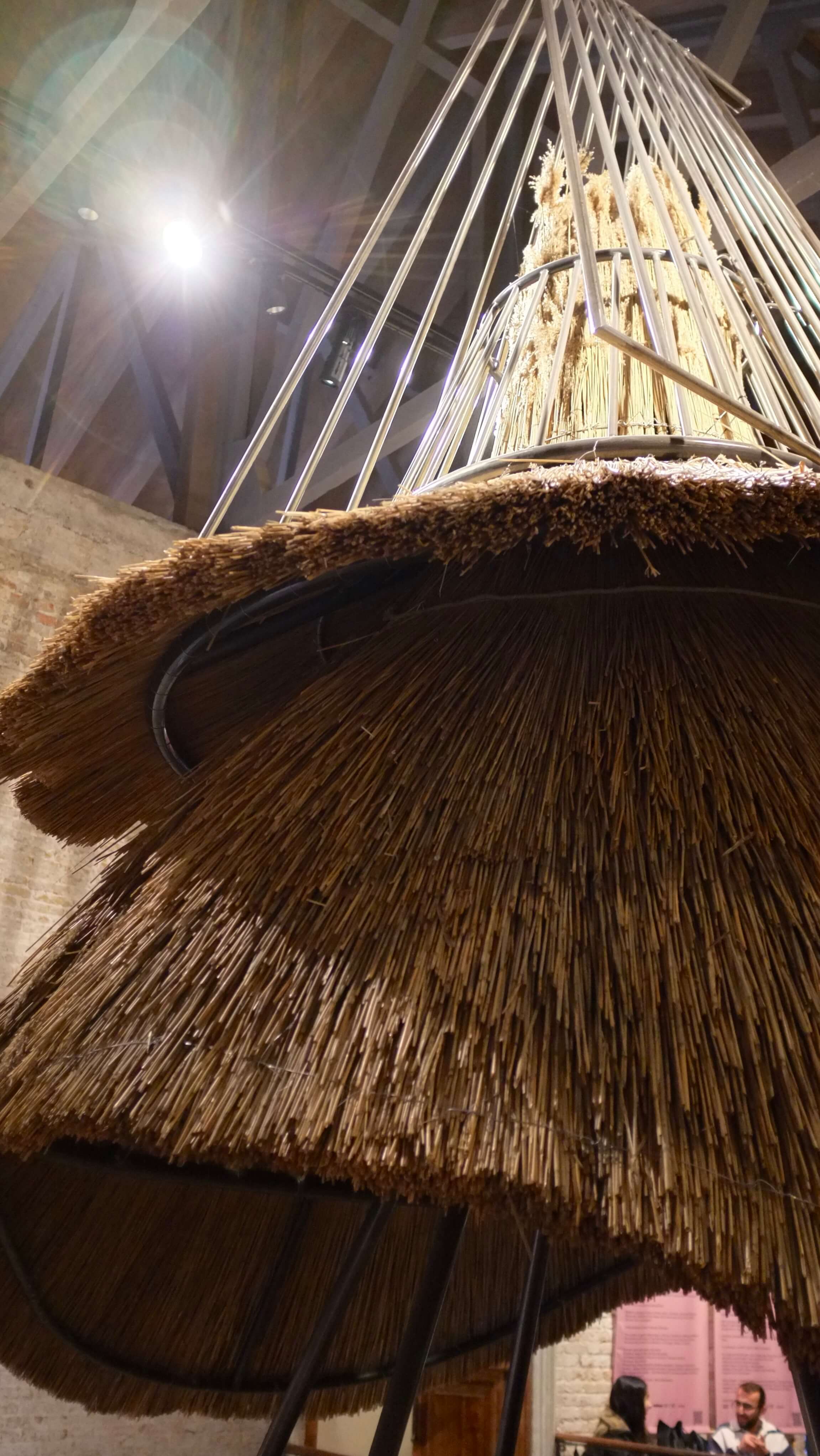 Солом’яний дах, представлений на виставці, є впізнаваним елементом традиційної сільської архітектури. Ми впізнаємо його з теплом — а сьогодні, в умовах культурної війни, і з болем.