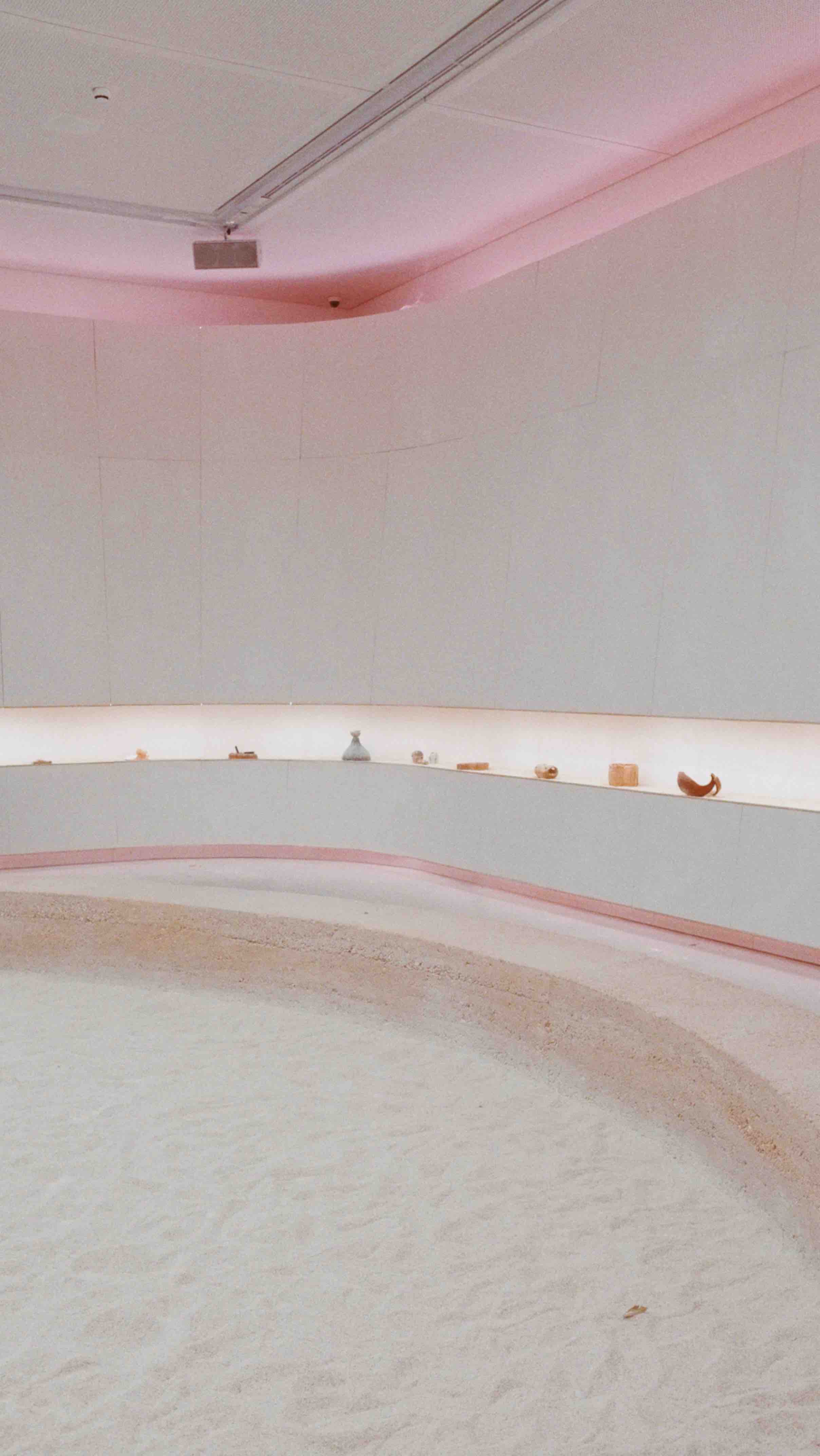 AI tries to approach a world where, unlike humans, it lacks a body. The hole in the first floor of the pavilion (built in 1956 and causing regular problems in exhibitions) this time plays the role of connecting two worlds, while also representing limited perception: it is impossible to know everything. Through this hole, natural light enters the dark capsule of the first floor. Meanwhile, on the ground floor, a plaster installation with natural flaws houses a plant that can be watered. In the rationality of this physical object, we recognize our existence as human beings.